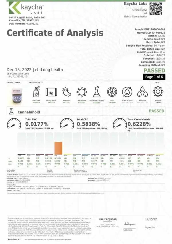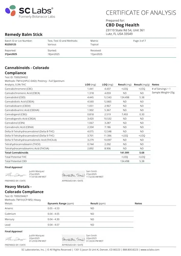 That’s why we make our rigorous 3rd party lab test results available for all Hemp Dog Health products. By hiring non-affiliated labs to test our products, we can ensure all our hemp products are consistent in quality and free of pesticides, heavy metals and pathogens.