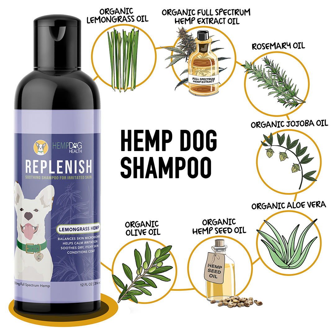 Transform bath time into a gentle, skin-supporting experience with Replenish Hemp Dog Shampoo—crafted to help maintain healthy skin using natural ingredients and Full Spectrum Hemp Extract.
