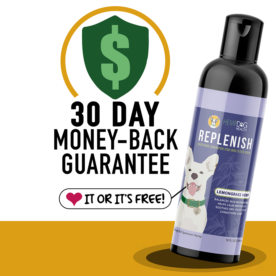 Made with 200 mg of Full Spectrum Hemp Extract and carefully selected organic ingredients, it cleanses while hydrating and protecting the skin, leaving your dog’s coat soft, clean, and refreshed. Replenish’s hypoallergenic formula is suitable for all dogs, including puppies and those with sensitive or allergy-prone skin.